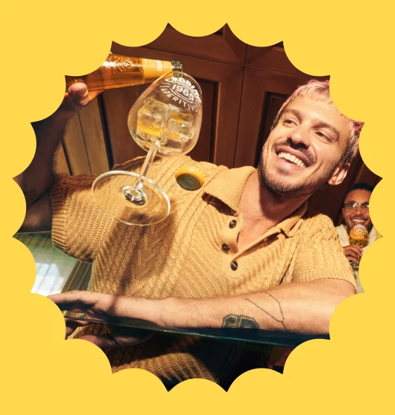 Un aperitivo analcolico dal sapore agrodolce unico. Frizzante e dorata: la bevanda perfetta da sorseggiare al tramonto.